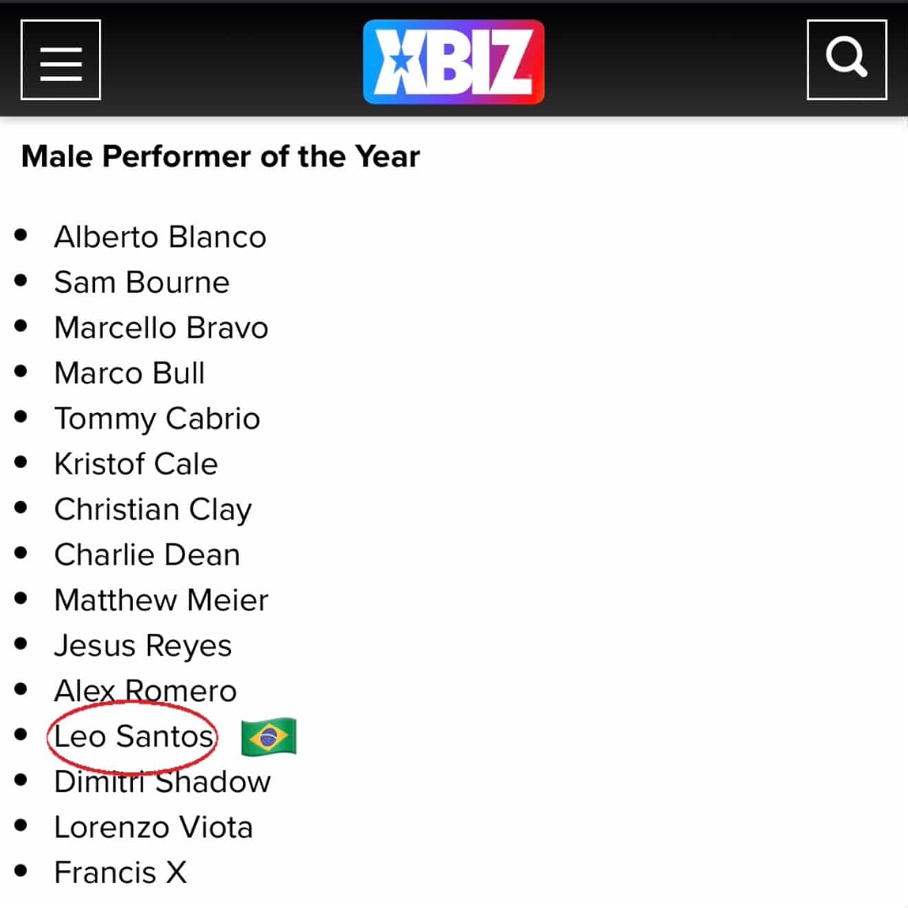 “Agradeço demais ao XBIZ pela indicação de melhor performance do ano e também quero dizer MUITO OBRIGADO a todos que me fizeram parte da minha história até aqui e contribuíram para que conseguisse realizar tal feito”, contou. O vídeo da performance do ator está disponível na plataforma adulta grátis.