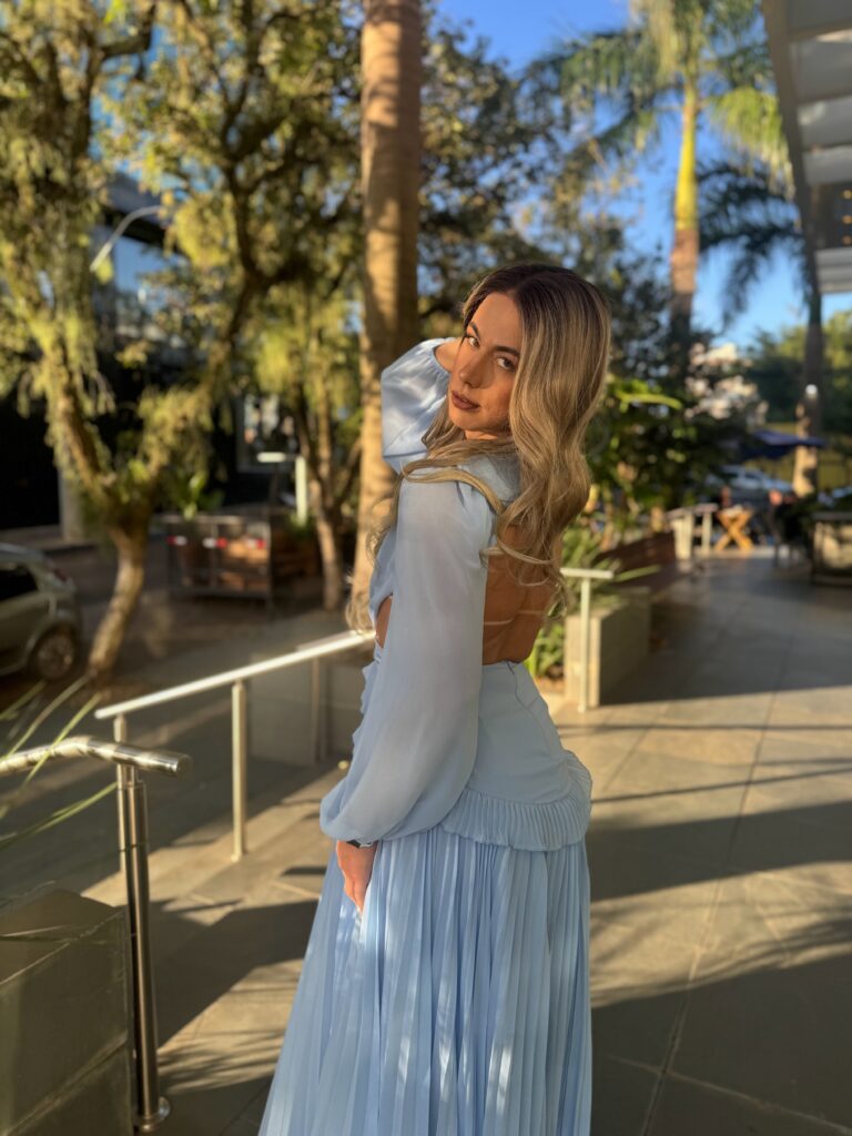 Para brilhar nos cliques, Alessia apostou em peças exclusivas da Angel Black Store, a loja que virou queridinha em Lajeado, RS. O look, que mescla a atitude da mulher gaúcha com a sofisticação da marca, valorizou ainda mais as curvas da musa e trouxe aquele toque de “ostentação fashion” que a gente ama acompanhar.